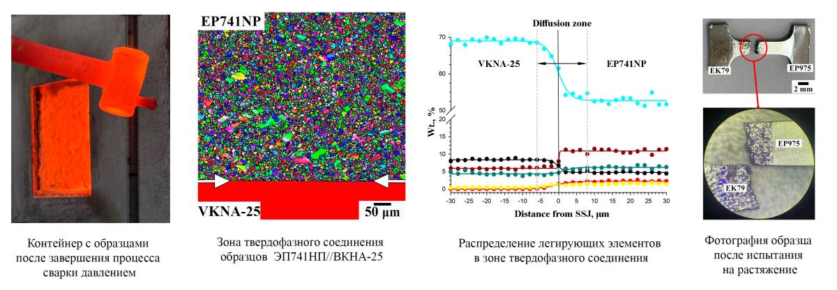 - Изучение взаимосвязи между химическим, фазовым составом, микроструктурой и свойствами твердофазных соединений жаропрочных и интерметаллидных сплавов на основе никеля.